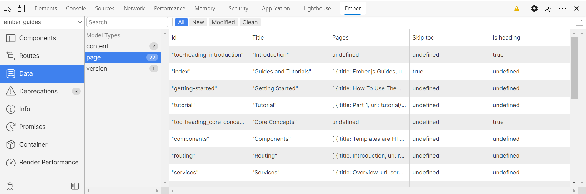 You can inspect your models by clicking on the Data tab. Check out Building a Data Custom Adapter below if you maintain your own persistence library. When you open the Data tab, you will see a list of model types defined